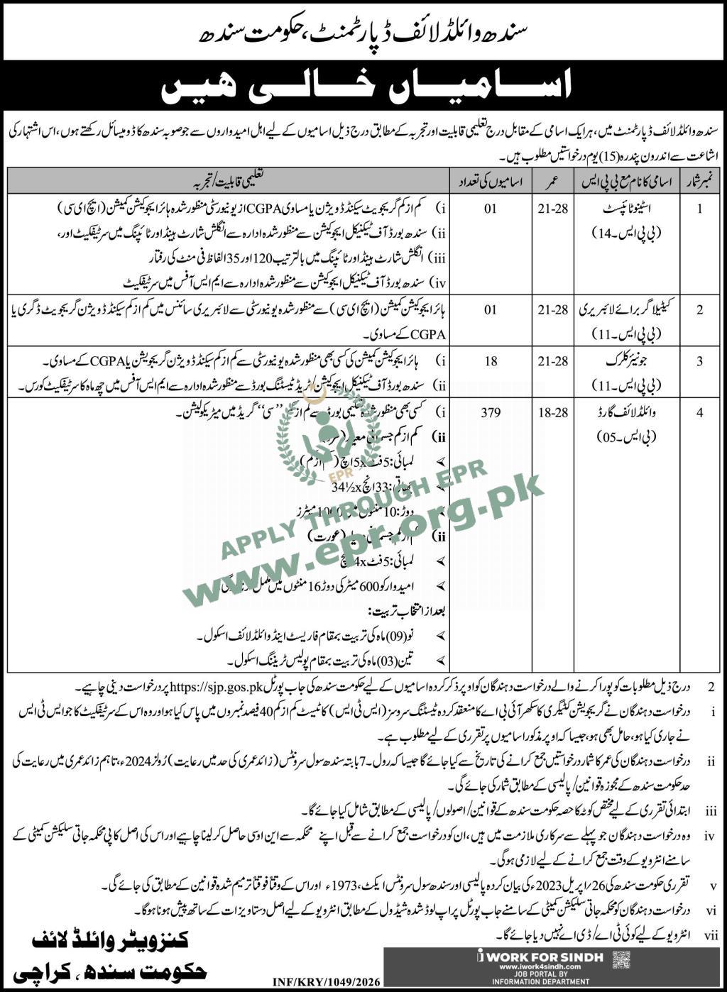 Govt. Dept : Forest & Wildlife Department, Sindh