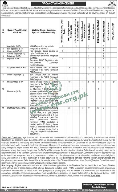 Govt. Dept : Divisional Director Health Servics, Quetta Division