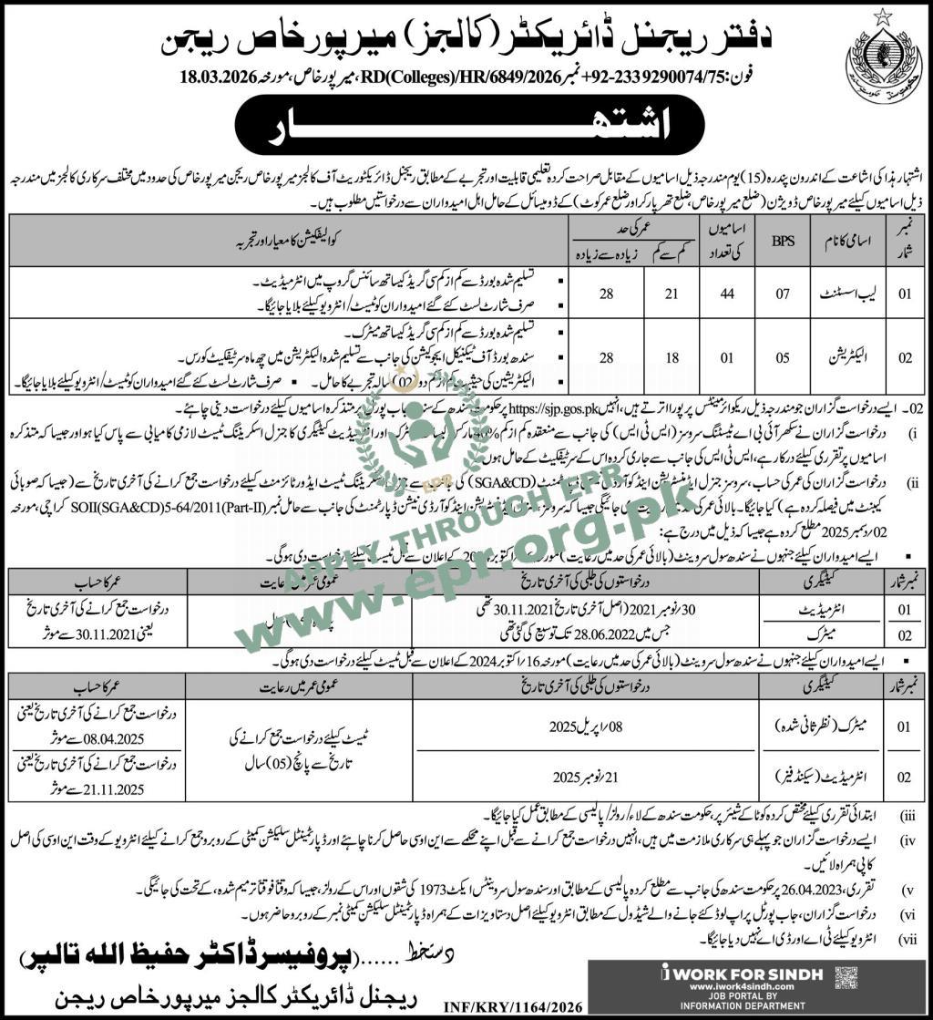 Govt. Dept : College Education Department, Mirpurkhas