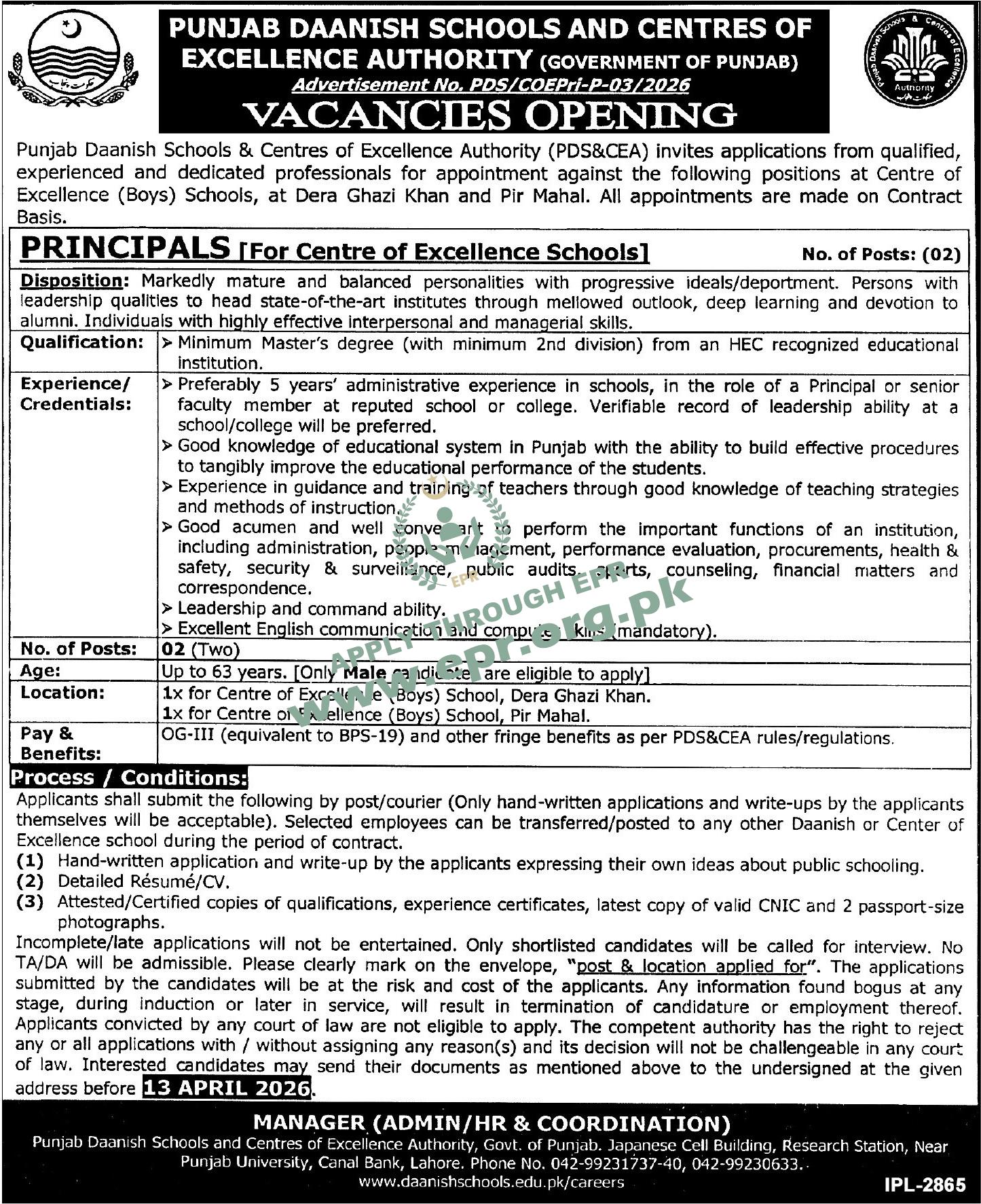 Govt. Dept : Punjab Daanish Schools & Centers of Excellence Authority