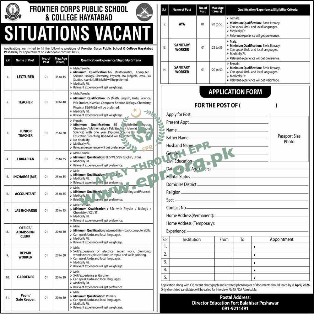 Govt. Dept : Frontier Corps Public School & College Hayatabad