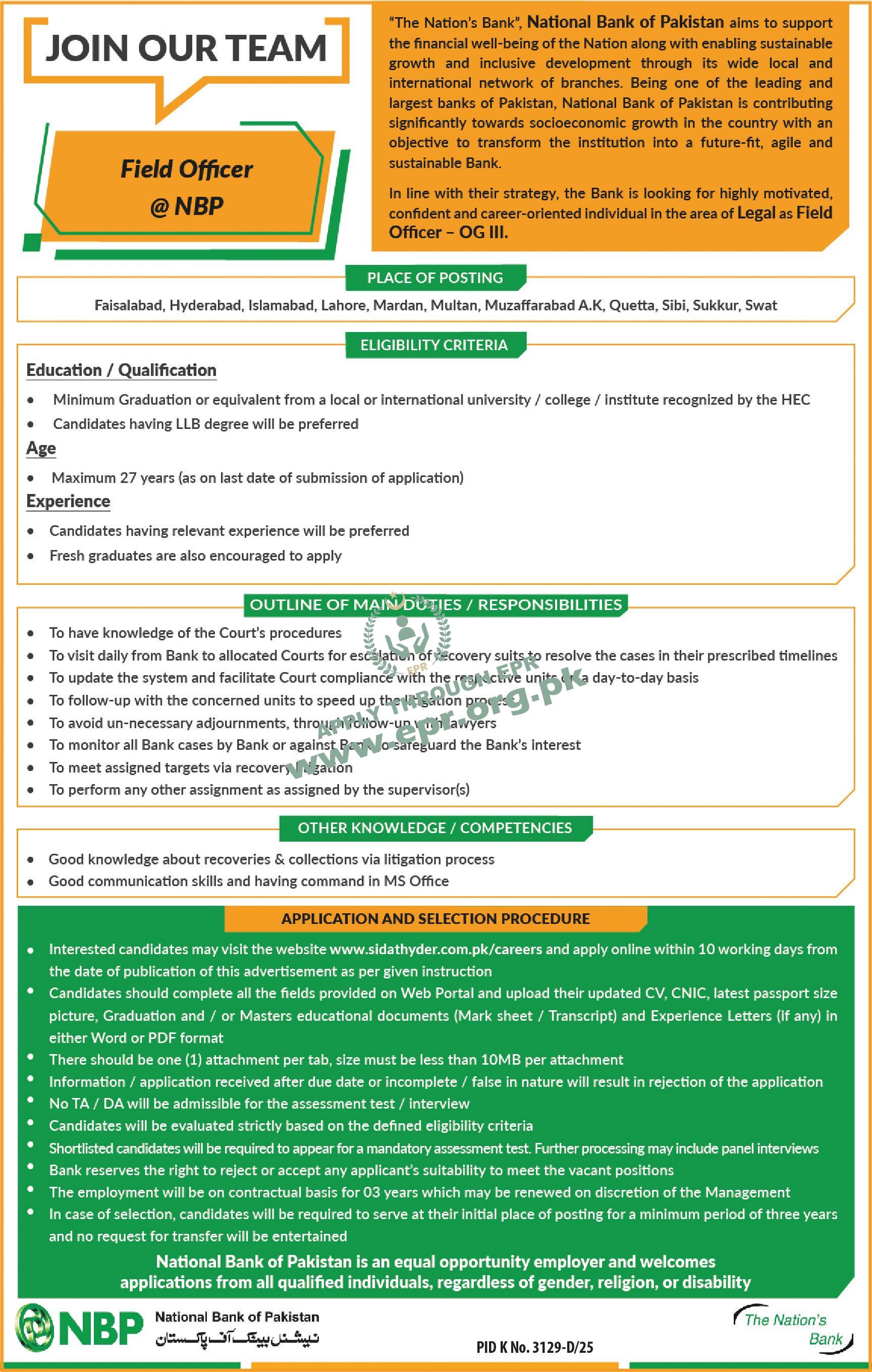 • Minimum Graduation or equivalent from a local or international university / college / Institute recognized by the HEC of Pakistan