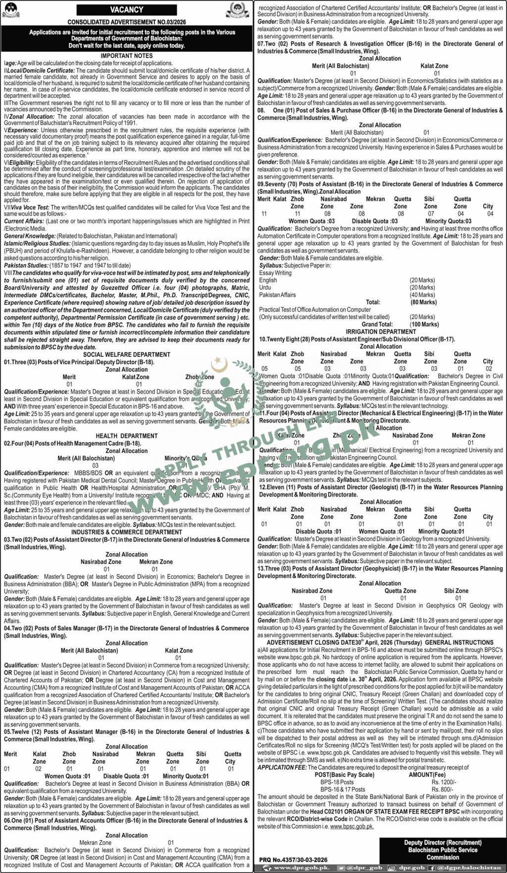 Govt. Dept : Balochistan Public Service Commission