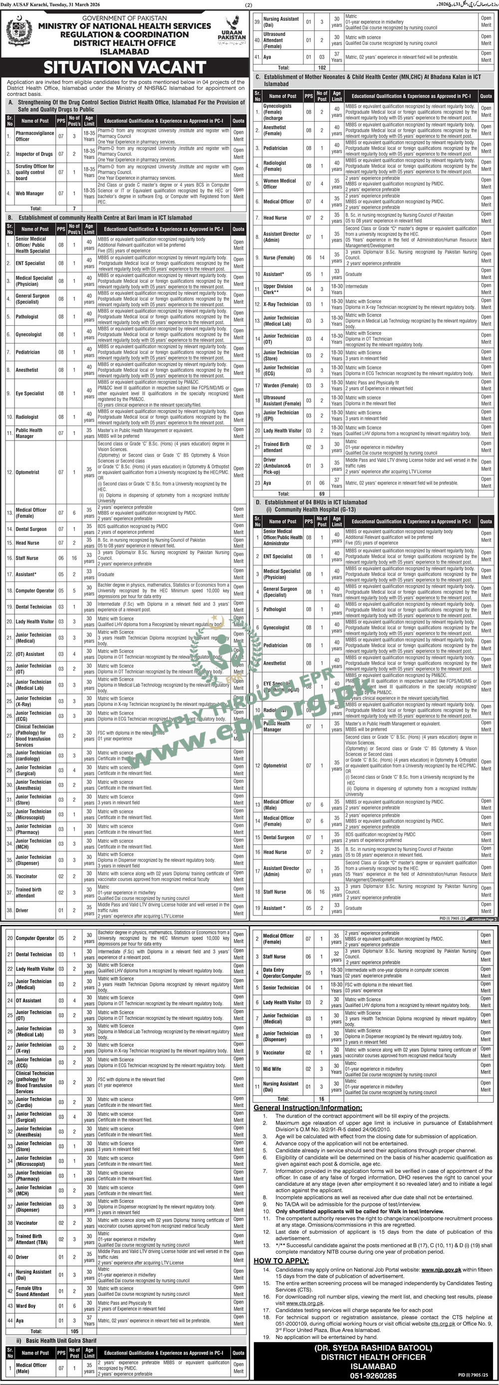 Govt. Dept : Ministry of National Health Services Regulations & Coordination