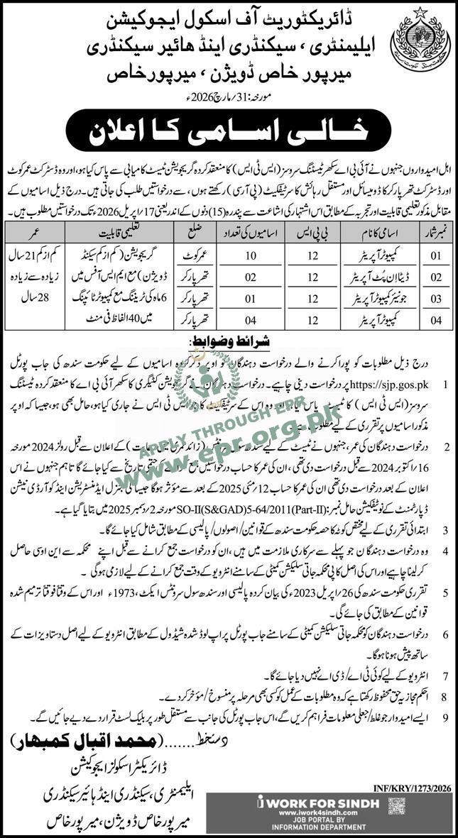 Govt. Dept : School Education & Literacy Department, Mirpurkhas