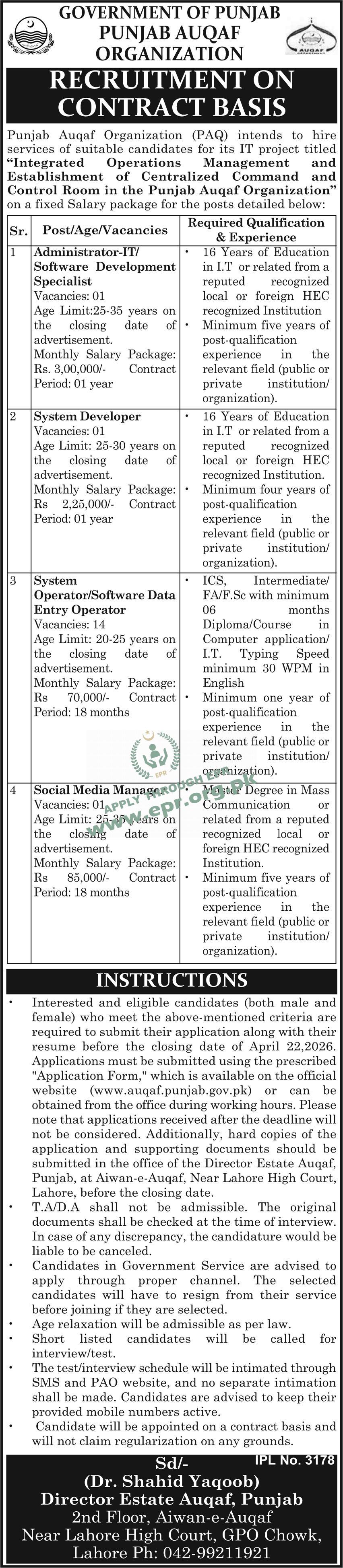 Req Qualification (Minimum) : Bachelor/Master 16 Years