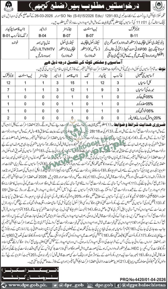 Govt. Dept : Schools Education Department, Balochistan