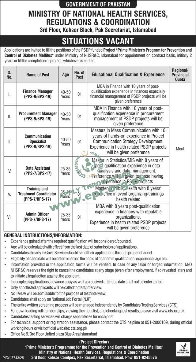 Govt. Dept : Ministry of National Health Services Regulations & Coordination
